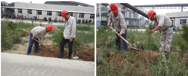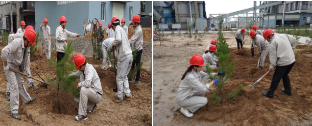 勞動過程中,領(lǐng)導(dǎo)處處帶頭,員工們熱情高漲,選樹苗、挖樹坑、填底土、種樹、澆水、修剪樹枝,干勁十足,整個廠區(qū)變得熱鬧起來。