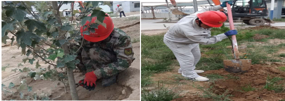他們對綠化植物進行現(xiàn)場清理,根據(jù)土質(zhì)特點栽種不同的樹木、花卉;對原有綠化部分缺損的樹木進行補種;對已成活花草樹木進行修剪、施肥;將精細(xì)化管理貫穿到整個植樹綠化活動中,確保樹木的健康生長和綠化效果。