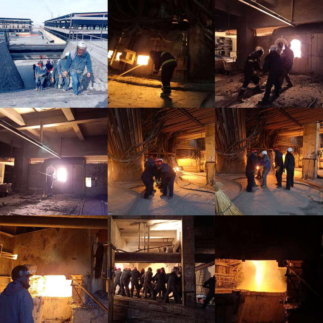 對(duì)著熊熊爐火,冶煉工人知道,爐腔內(nèi)變化無(wú)盡的是冶煉工人期盼的碩果,每出一爐電石都像是打一場(chǎng)硬仗,現(xiàn)在的時(shí)節(jié)冶煉工人的衣服都是濕了又干,干了又濕。防燙服就成了冶煉工人的護(hù)身符,厚厚的穿在身上,當(dāng)脫下衣服的時(shí)候,發(fā)出一股餿餿的味道。每一次大修開爐都是一次新的挑戰(zhàn),堅(jiān)守崗位,潛心觀察,呼喊奔忙,團(tuán)結(jié)協(xié)作,沖鋒陷陣,奮戰(zhàn)前沿……。每天24小時(shí)火苗“呼呼呼……”地?fù)u曳,煙霧混合著粉塵穿梭彌漫,熔硫滾滾,蒸汽翻卷,設(shè)備轟鳴,爐花飛舞。烈焰熠熠金光閃閃,熔流像一道道金色的瀑布,如一條條通紅透亮的巨龍,從爐腔內(nèi)豪放呼嘯著噴涌而出,順溜槽咆哮著渲泄而下。朵朵金燦燦的銅花在空中舞蹈,燁燁生輝迎胸?fù)涿?冶煉工人的臉掛上金邊猶如一團(tuán)團(tuán)盛開的花,煜煜奪目流光溢彩。冶煉工的心情與急瀉的紅瀑布一起洶涌,熱血隨飛躍的熔龍一起翻騰,心花和歡呼的銅花一起飛舞,是呵,爐膛內(nèi)煉出了勞動(dòng)者的贊歌,爐門外涌出了金色的碩果。