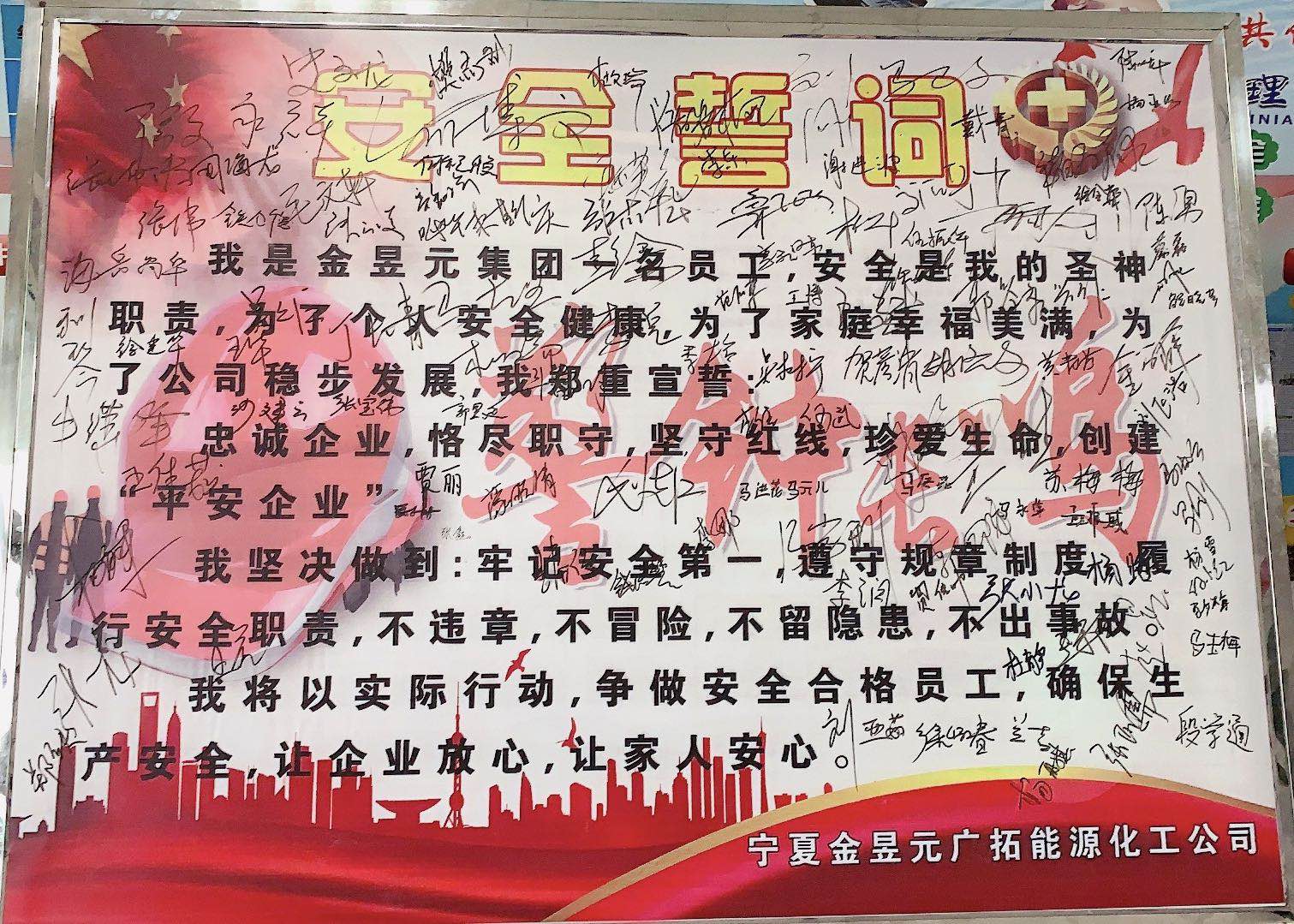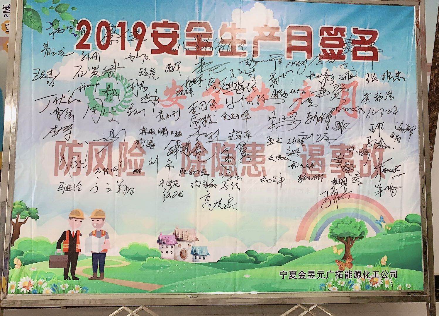 最后,開展了安全簽名活動,全體干部職工在“防風(fēng)險(xiǎn)、除隱患、遏事故”的橫幅上鄭重地簽下了自己的名字,表達(dá)了對開展好安全月活動的信心和實(shí)現(xiàn)安全生產(chǎn)目標(biāo)的決心。