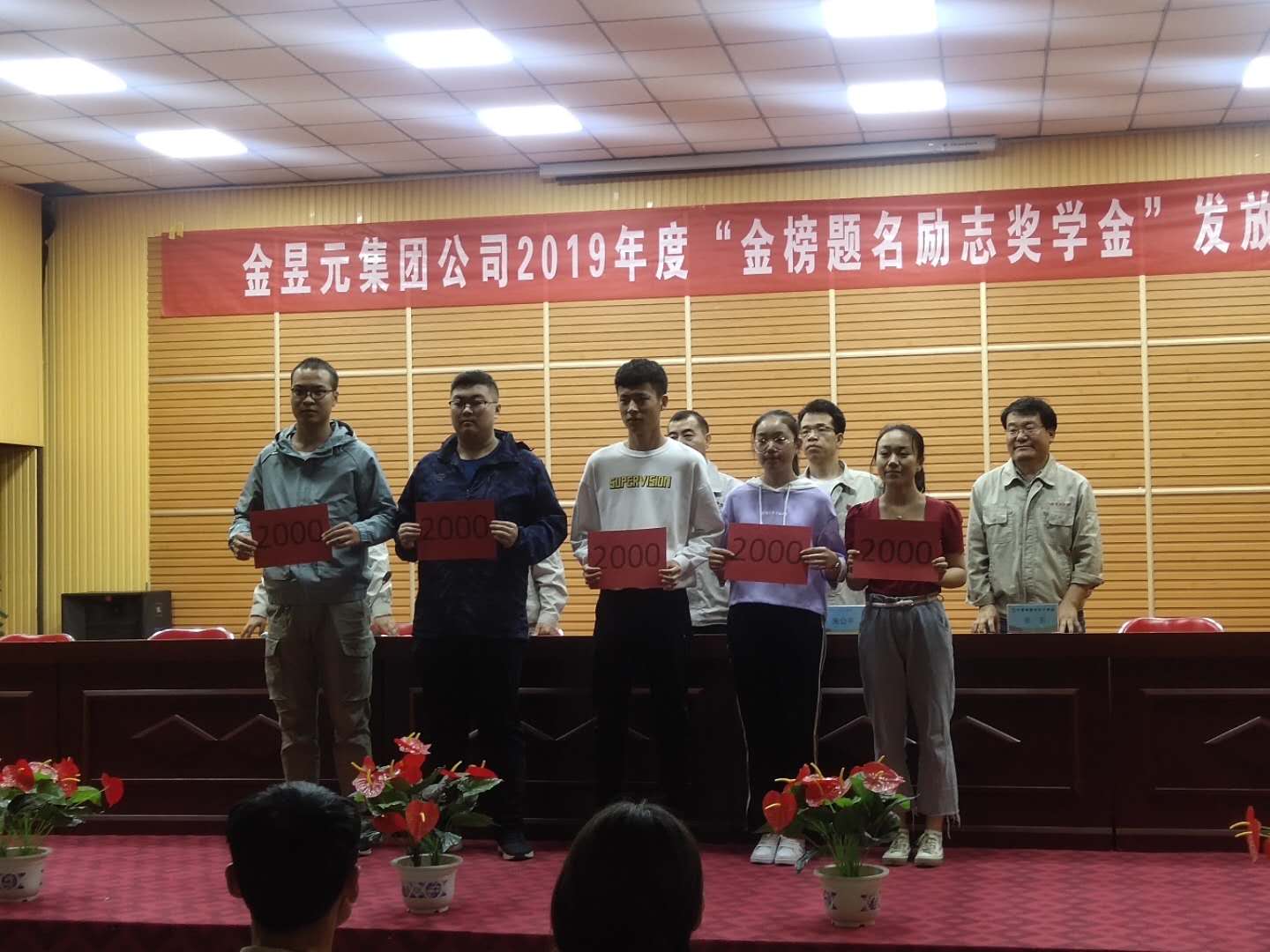 2019年8月23日,集團(tuán)公司領(lǐng)導(dǎo)為2019年度金昱元的職工子女考取一、二本院校。發(fā)放“金榜題名勵志”獎學(xué)金,此次活動鼓勵了全體金昱元職工,學(xué)習(xí)這些父母培養(yǎng)優(yōu)秀子女的經(jīng)驗,同時,此大會能為培養(yǎng)出優(yōu)秀的兒女的父母表示祝賀。