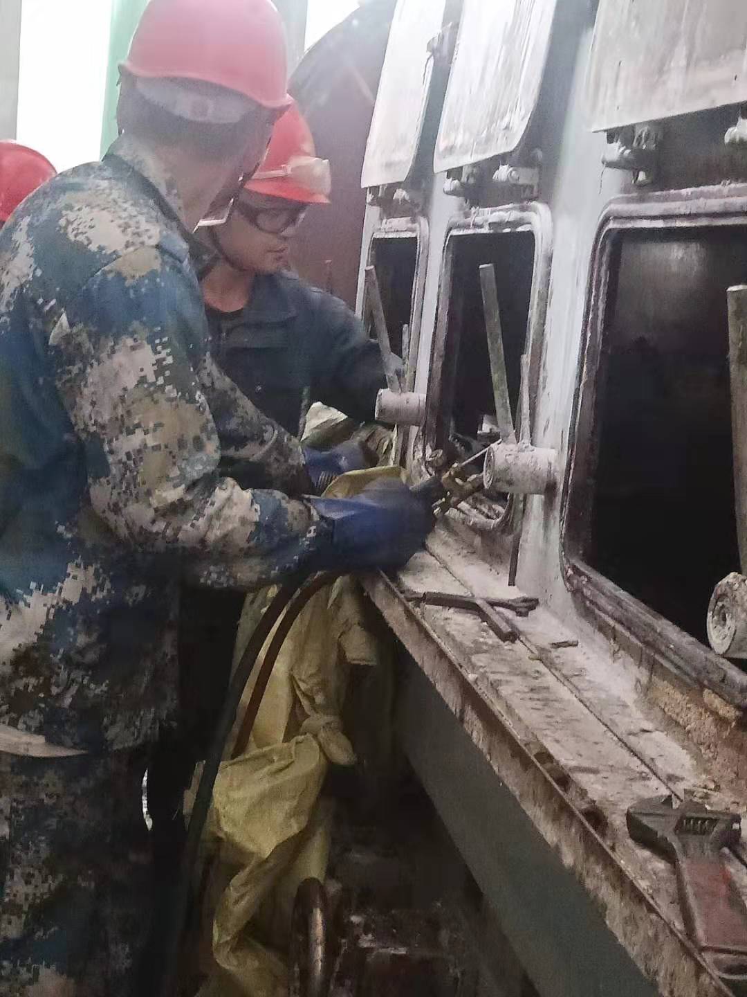 清晨,我看到兢兢業(yè)業(yè)的管理人員和朝氣蓬勃的年輕同事,他們“武裝上陣”頭戴安全帽,手帶防護手套。拿著各類方案和各類工具,快速地奔向各個檢修點。我看到他們忙碌的身影和為了完成檢修任務(wù)而焦灼的神情,大大小小的設(shè)備里三人一伙,兩人一組,有更換閥門的,有更換閥欄的,每個人手上、身上都沾滿了油污,他們沒有抱怨,只是默默地付出著。