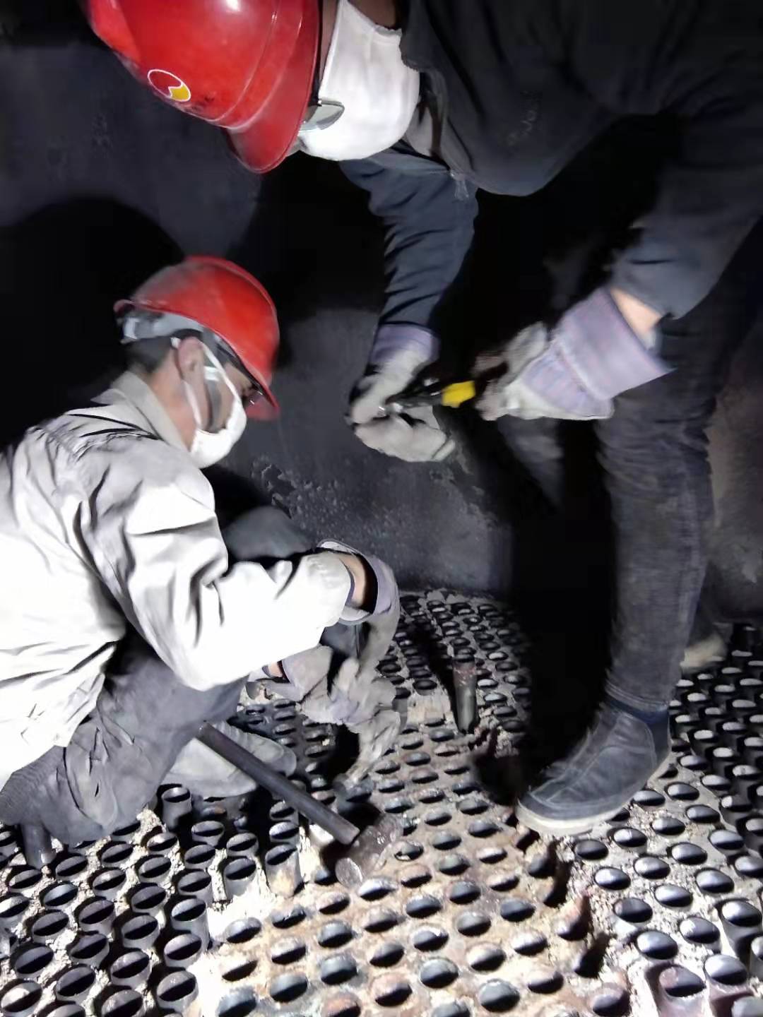 而另一邊,脫硫塔底積料清理卻迎上了這寒冬的冷意,塔里潮濕又冷,光線又黑暗,與塔外的氣候可以說(shuō)是“有過(guò)之而無(wú)不及”。塔底的積水沒(méi)過(guò)膝蓋,從外向里望去就像個(gè)黑乎乎的“水缸”,只見(jiàn)我們檢修人員二話不說(shuō)穿上雨鞋,冒著塔里零下五六度的低溫鉆進(jìn)去開(kāi)始工作,塔內(nèi)淤泥被他們用鐵鍬不斷鏟向外面,從塔內(nèi)出來(lái)的時(shí)候衣服已經(jīng)濕了半截凍得瑟瑟發(fā)抖,可是沒(méi)有半點(diǎn)怨言,而主人翁的能動(dòng)性和著齊心協(xié)力描繪出了冬日里一道充滿暖意的風(fēng)景!