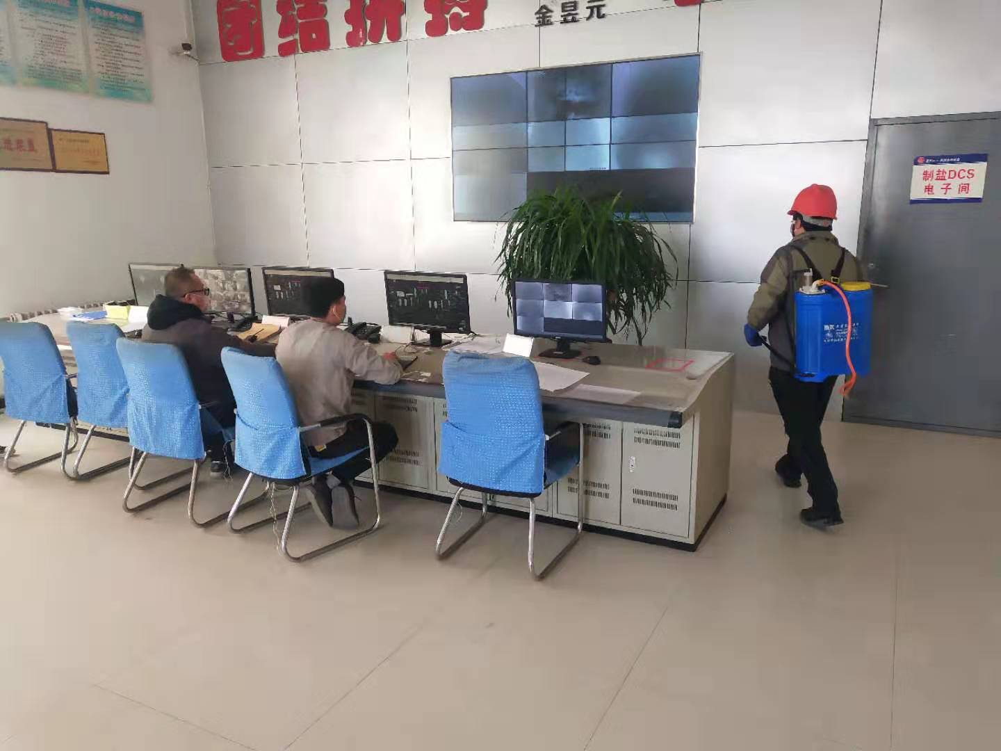 8、各裝置、科每日分別于8-9時(shí)、14-15時(shí)、20-21時(shí)對(duì)辦公區(qū)域、主控室、值班室、操作場(chǎng)所、生產(chǎn)廠房等區(qū)域進(jìn)行消毒工作,并做好相關(guān)記錄。熱力裝置負(fù)責(zé)對(duì)進(jìn)入煤場(chǎng)路口鋪設(shè)草簾或棉質(zhì)墊子,安排人員每隔二小時(shí)向上噴灑消毒水,鹽硝裝置在小廣場(chǎng)護(hù)欄間路口鋪設(shè)草簾或棉質(zhì)墊子,安排人員每隔二小時(shí)向上噴灑消毒水,對(duì)進(jìn)廠車(chē)輛輪胎進(jìn)行消毒。