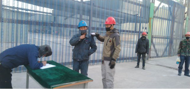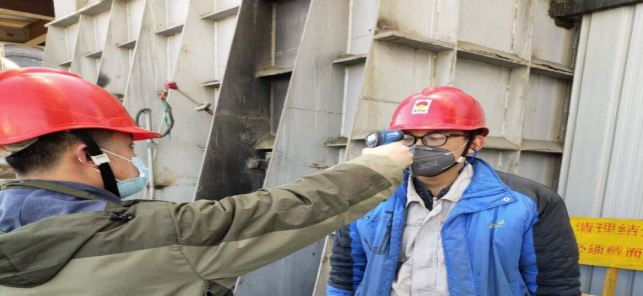 在公司北大門,他們對進(jìn)出廠區(qū)職工及車輛登記,嚴(yán)格“疫情”防控工作。