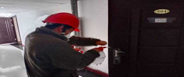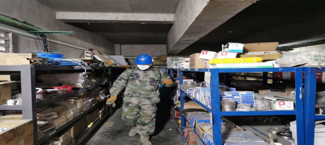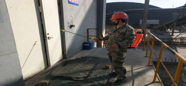 對(duì)廠區(qū)衛(wèi)生間消毒。