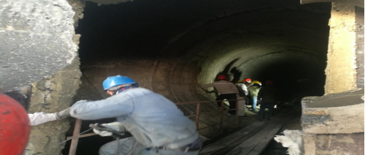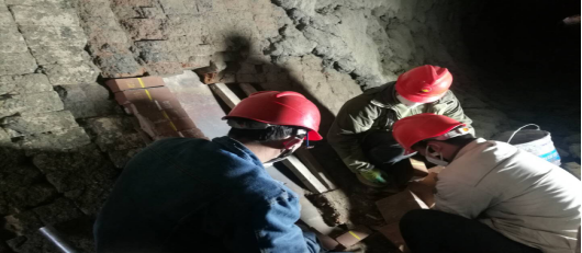 窯磚緊固。加塞,在轟鳴的風鎬聲中,夾雜著交替起落的敲擊聲,工友們,正頂著滿面的塵灰完成作業(yè)。