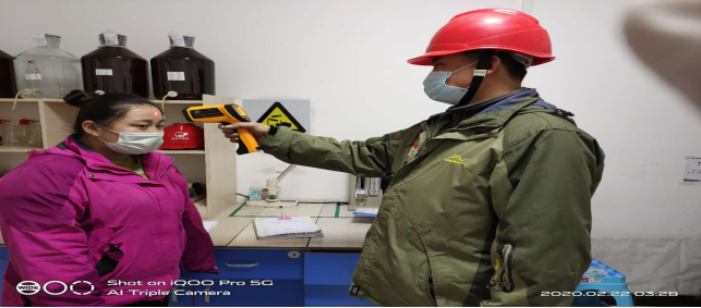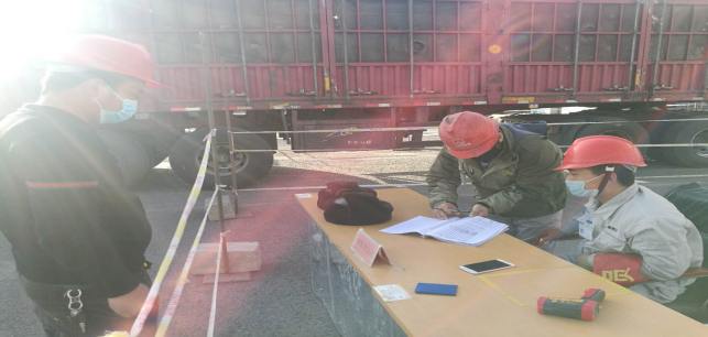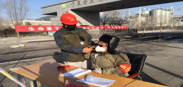 在園區(qū)南門,今日截止下午17時整,他們檢測、消毒、登記車輛78輛,人員100人,車輛正常,人員體溫均在正常范圍。