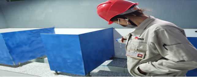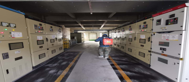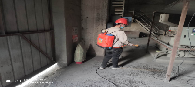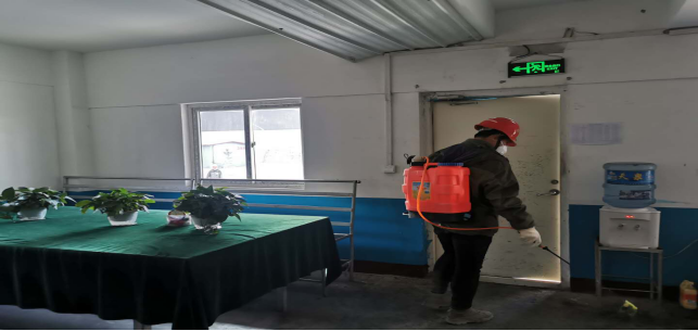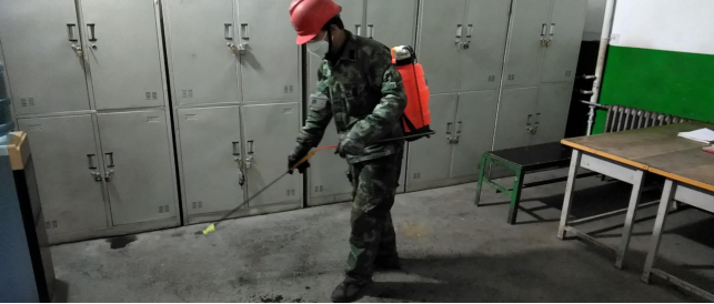 對廠區(qū)衛(wèi)生間消毒。