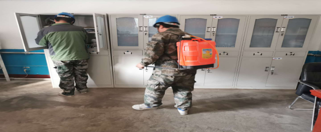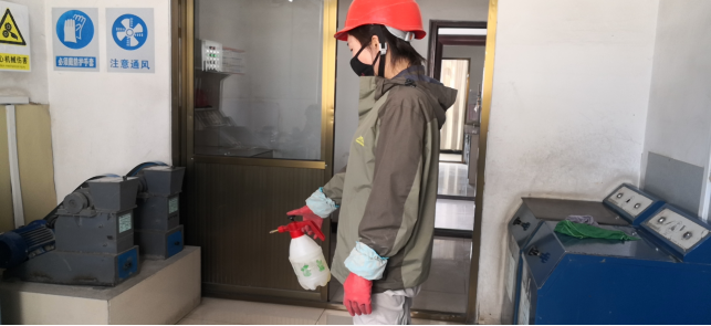 擦拭操作臺(tái)、門(mén)把手,工作的有條不紊。
