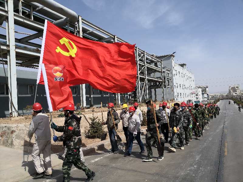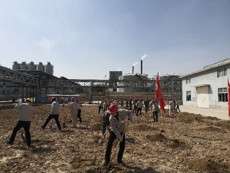 疫情防控下,黨員帶頭堅(jiān)守一線不松懈;す军h支部書記賈存富帶頭奔赴綠化作業(yè)一線,組織各單位黨員對液化崗位土地進(jìn)行平整,身體力行踐行“不忘初心,牢記使命”。
