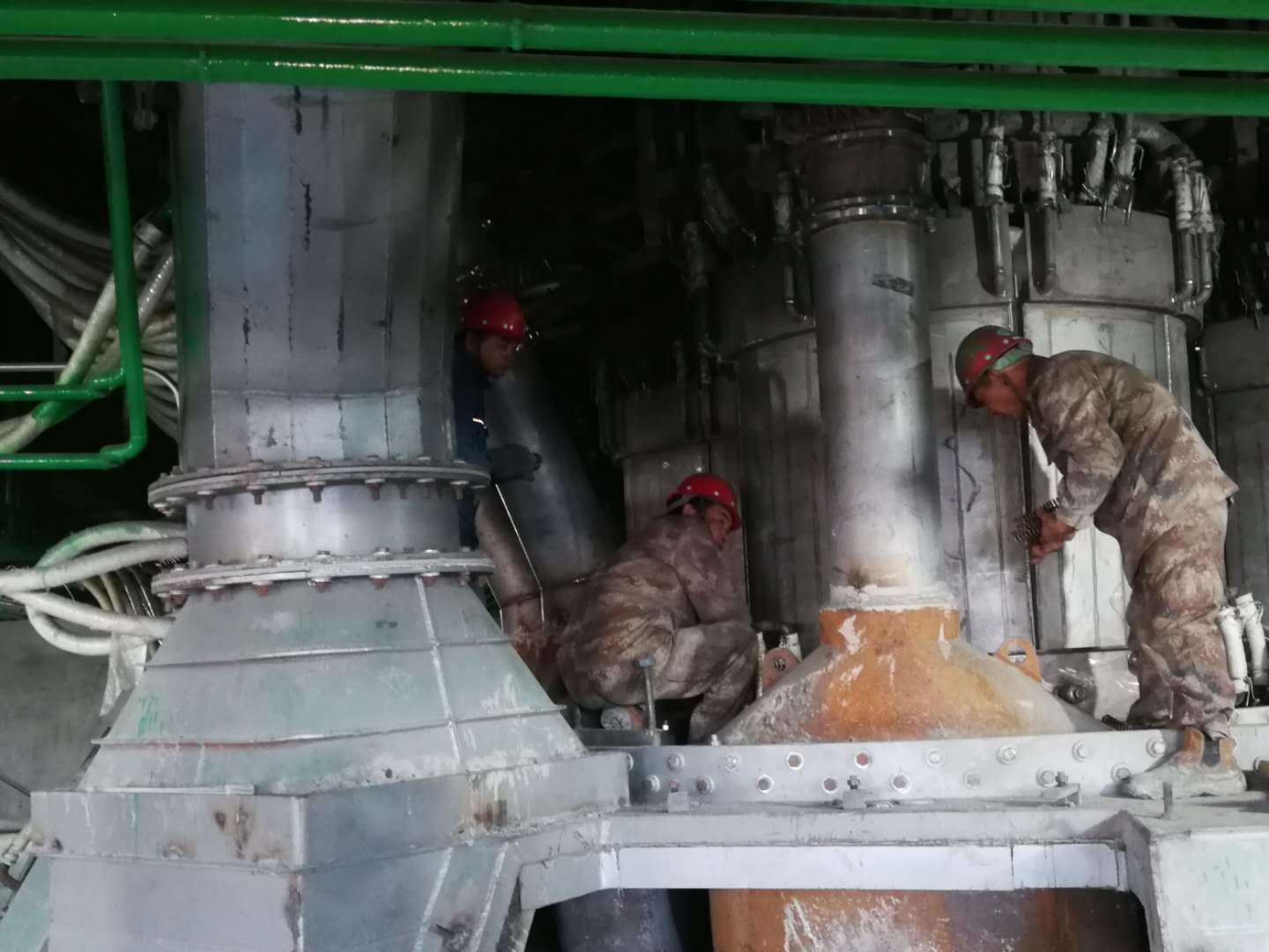 電石爐主體爐面的技改工作基本只剩下收尾的細(xì)節(jié),皮帶輸送棧道長廊的外包單位正在分工合作,一部分人完善皮帶輸送系統(tǒng),另一部分在做外部墻體的護(hù)板安裝工作。