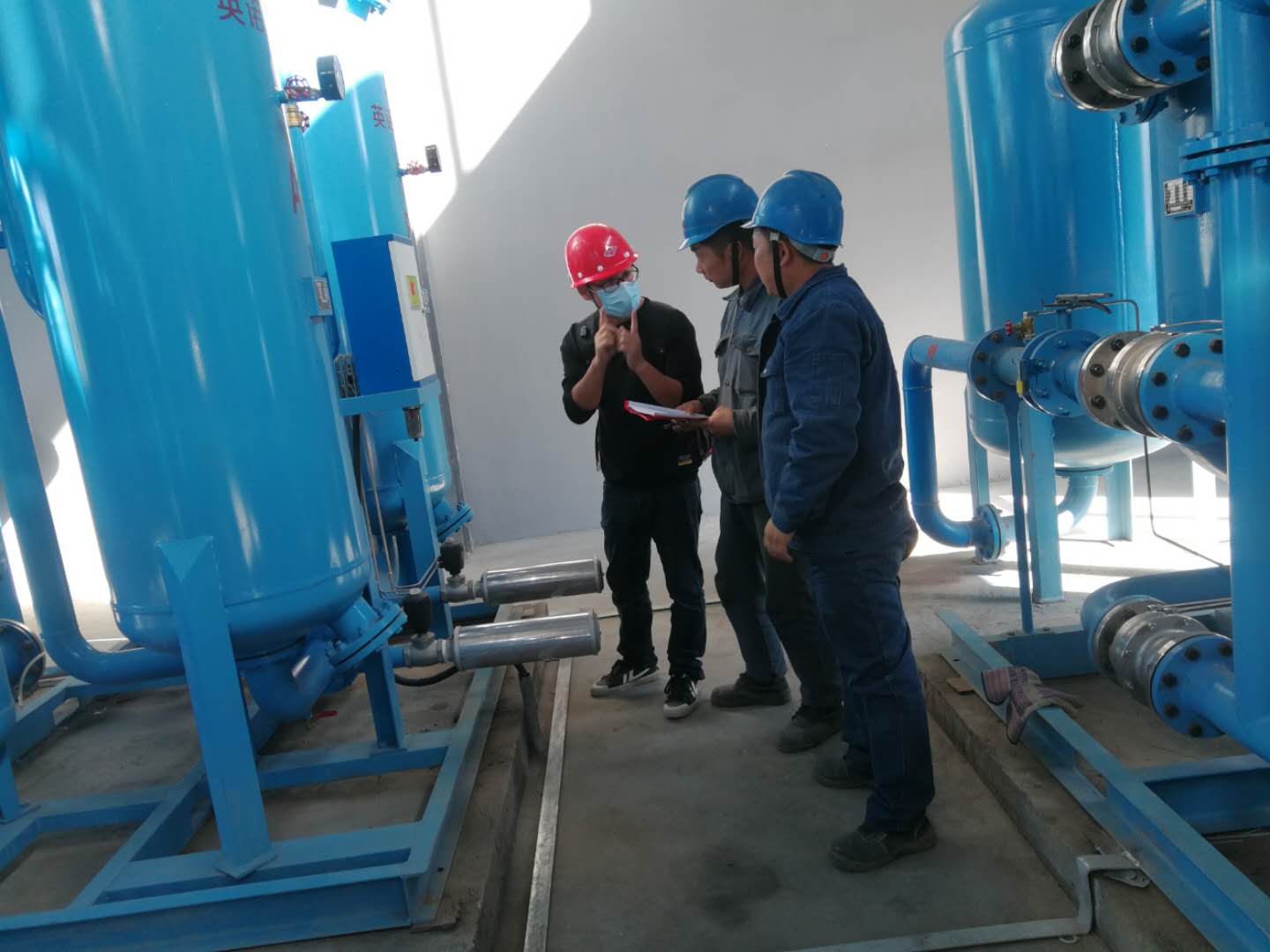 截止發(fā)稿前,空分制氮已經(jīng)開機(jī)打壓試車,發(fā)現(xiàn)漏點(diǎn)及時消除后再次重復(fù)對后系統(tǒng)儲罐設(shè)備打壓試車。試壓的同時本公司維修人員積極向廠家技術(shù)人員請教空分制氮設(shè)備的常見故障及處理方法。