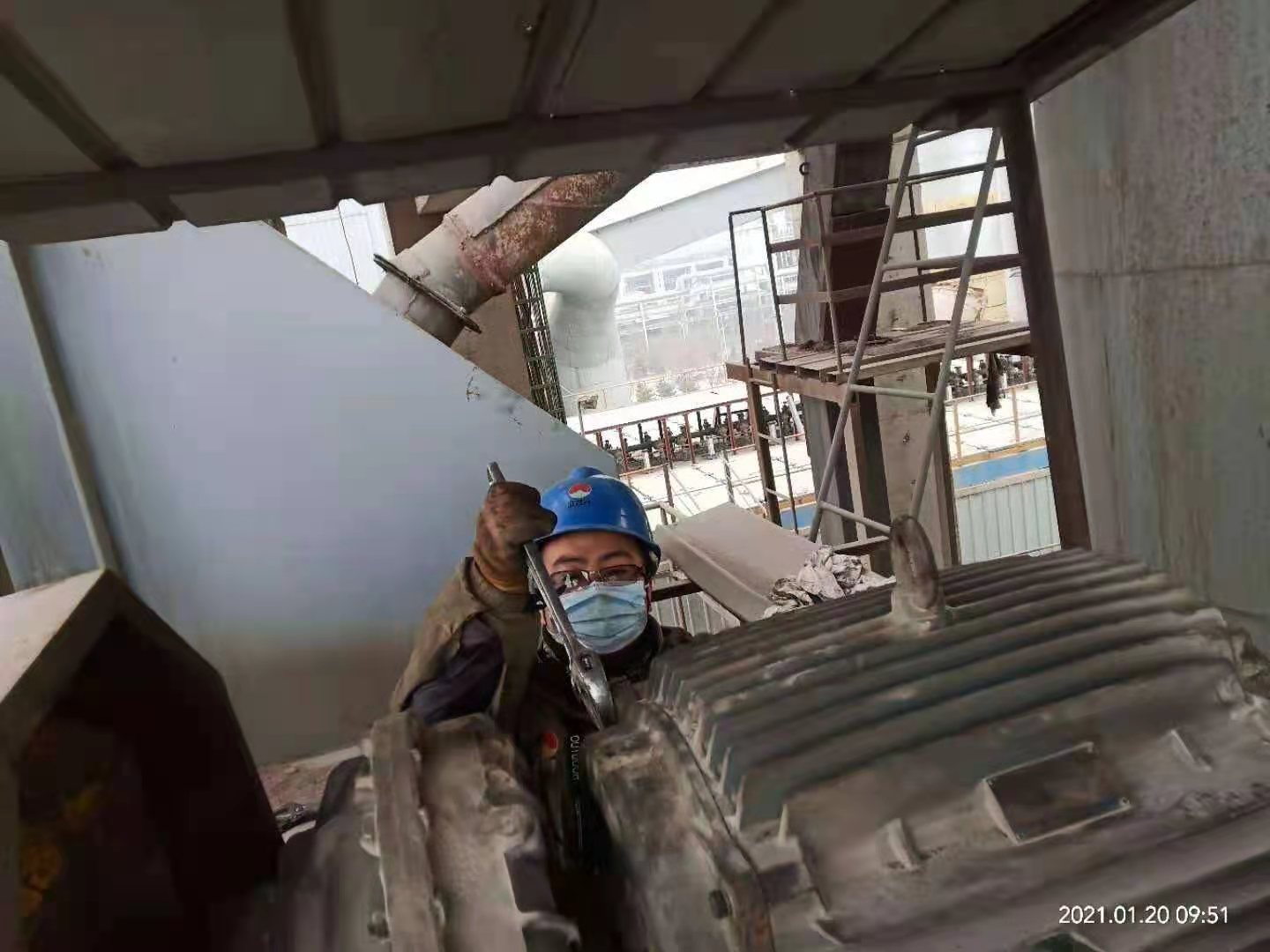 檢修作業(yè)全程跟蹤,一天一夜檢修下來,有睡在辦公室沒回家的,也有吃飯就在作業(yè)現(xiàn)場……比比皆是。總經(jīng)理吳紅衛(wèi)更是如此,一個(gè)作業(yè)一個(gè)作業(yè)現(xiàn)場轉(zhuǎn)上轉(zhuǎn)下,從2026提升機(jī)作業(yè)點(diǎn)到回轉(zhuǎn)窯主傳減速機(jī),再到篦冷機(jī)、煤磨、烘干破、預(yù)熱器、2301、2323、2401提升機(jī)以及高溫風(fēng)機(jī)、回轉(zhuǎn)窯窯內(nèi)及燃燒器檢修現(xiàn)場,指導(dǎo),建議,一直值守在現(xiàn)場,忙著跟工人們同時(shí)收工,一整晚都未歸宿就寢室。工人們,裝置長擔(dān)心他的身體,時(shí)常提醒讓他回去休息一下,喝口水,而他放心、安慰大家說,“我和大家一樣的心情,早完工,產(chǎn)量就能早生產(chǎn)一點(diǎn),我們后續(xù)生產(chǎn)就能輕松一點(diǎn),大家加油”。一直以來,他和這個(gè)班子成員、工人們一起頂著嚴(yán)寒,一直堅(jiān)守在現(xiàn)場安全履職和協(xié)調(diào)把控檢修進(jìn)度,不厭其煩的一次次的詳細(xì)交底,直到一項(xiàng)一項(xiàng)設(shè)備檢修更換完畢。