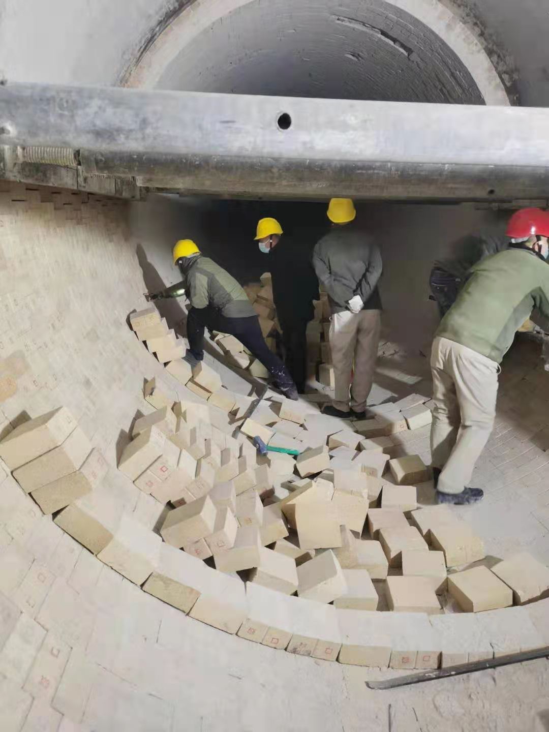 入窯鉸刀更換結(jié)束后,幾名維修工再一次細致的對鉸刀附屬設(shè)備進行檢查,確;剞D(zhuǎn)窯開啟后入窯鉸刀能夠長周期穩(wěn)定運行。回轉(zhuǎn)窯內(nèi),平時的崗位巡檢操作工變身砌磚師傅,對窯磚進行砌筑。大家配合默契,像極了從事砌磚行業(yè)多年的老師傅。窯頭平臺上,頂著寒風搬磚的是各裝置協(xié)調(diào)的員工。一方有難八方支援,不管回轉(zhuǎn)窯還是電石爐,都是資源再生公司的設(shè)備。哪兒檢修,其他裝置馬上協(xié)調(diào)人員配合。一次檢修就是一次考驗,不僅要保安全保進度,還要保證檢修質(zhì)量。各級管理人員在保證安全的前提下對窯磚砌筑質(zhì)量進行檢查,確保檢修質(zhì)量。