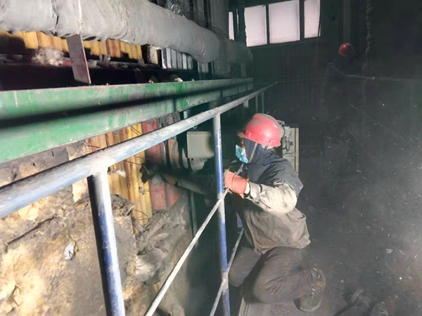 在檢修現(xiàn)場,隨處可見檢修人員忙碌的身影,他們不斷的變換著動作,靈活地使用各種型號的工器具。檢修過程中每一個起吊都小心翼翼,每一個動作都井然有序。只看見熱力裝置長毛文軒從爐膛狹小的人孔鉆進(jìn)爐膛,借助二十多米高的腳手架,對水冷壁管的磨損情況進(jìn)行細(xì)致檢查,對澆注料、燃燒器、過熱器等受損情況也進(jìn)行了逐一查看。他帶領(lǐng)熱力裝置全員由點(diǎn)到面,由里到外、全方位監(jiān)管督導(dǎo),有效提升檢修質(zhì)量。