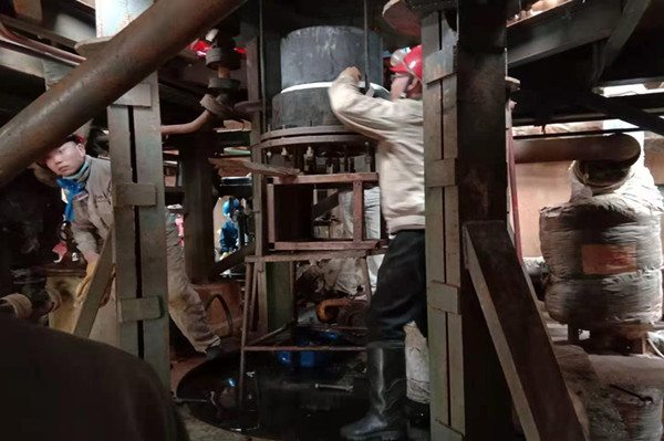 燈頭是蒸汽爐最核心的部件,它就如同蒸汽爐的“心臟”,保證著蒸汽爐的安全平穩(wěn)運(yùn)行。由于燈頭是石英材質(zhì),不能有任何碰撞。有著二十年檢修工作經(jīng)驗(yàn)沈培銀老師傅,像一名“將軍”一樣,指揮著大家拆燈頭,滿身的油污,像軍功章一樣掛在他的胸前。只見他拿來三根全絲螺桿,均勻地固定在燈頭支座上,隨著三只螺母的松動,燈頭就開始慢慢地向下移動,為了保證燈頭的平穩(wěn)下落,三個(gè)人必須同時(shí)松動螺母,這需要高度默契地配合。 沈培銀老師傅不緊不慢地松動著螺母,并時(shí)刻提醒著其他兩個(gè)人的進(jìn)度。汗水早已濕透了三人的衣服,裹挾著污漬的汗水不停地順著他們的臉頰滴落。愛開玩笑的同事,不失時(shí)機(jī)地說個(gè)笑話,逗得大家哈哈大笑,身上的疲憊感頓時(shí)消減幾分。