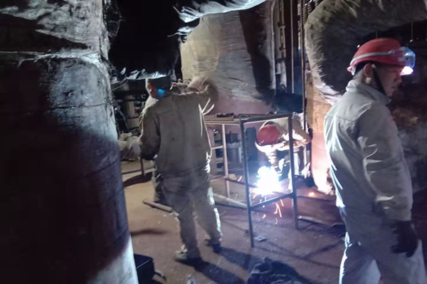 此時(shí)隆隆的吊車(chē)聲響徹在檢修現(xiàn)場(chǎng)。檢修作業(yè)最關(guān)鍵的時(shí)刻到來(lái)了,只見(jiàn)維修班長(zhǎng)熟練用割槍切割著設(shè)備與框架的支點(diǎn),通紅的鐵水四處飛濺不時(shí)落在他的衣服上,留下黑色的小孔。他也顧不得這些,迅速完成了設(shè)備與框架的切割,其他人員也各司其職忙著斷口。隨著吊鉤的慢慢升起設(shè)備輕松與框架分離,由于空間狹小吊臂的活動(dòng)空間有限,吊裝作業(yè)顯得異常的緩慢,這對(duì)長(zhǎng)時(shí)間在寒冷的室外作業(yè)人員是個(gè)極大的考驗(yàn),伴隨著指揮人員最后的口令下達(dá),舊的再沸器設(shè)備被緩緩地放到地上。此時(shí)已過(guò)中午時(shí)分,雖然大家早已饑腸轆轆,但是每個(gè)人的臉上洋溢著笑容,因?yàn)樗麄兩钌畹亩茫挥薪?jīng)歷了艱辛的拼搏,才會(huì)收獲成功的喜悅。