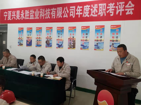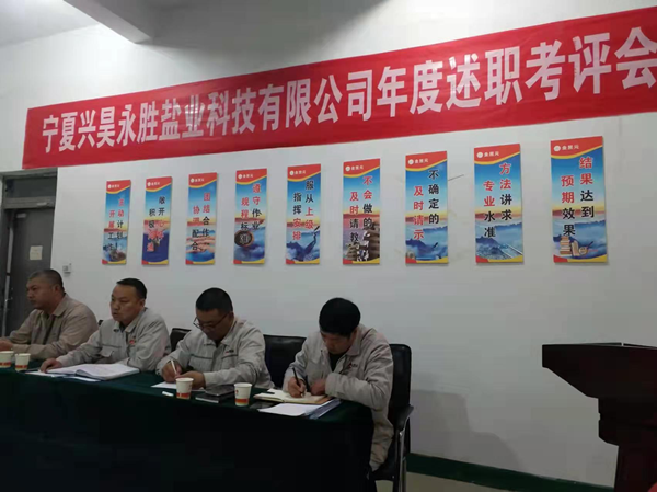 2021年12月2日下午,寧夏興昊永勝鹽業(yè)科技有限公司組織召開2021年度管理人員述職考評會,聽取管理人員履職情況、管理目標(biāo)和重點(diǎn)工作完成情況、分管工作和本人履職中存在問題及下一年的工作思路。