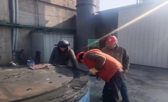 檢修人員鉆進(jìn)預(yù)熱器檢查門(mén)子是檢修預(yù)熱器管道的“必經(jīng)之路”,也是支撐徹底完成預(yù)熱器檢修的關(guān)鍵環(huán)節(jié)。因?yàn)闀r(shí)間緊、任務(wù)重,為了不影響檢修進(jìn)度,檢修人員常常進(jìn)去干干凈凈,出來(lái)時(shí)灰土灰臉,不得不輪番上陣,從上到下,完成結(jié)皮清理。他們四人一組,從安全監(jiān)護(hù)到技術(shù)指導(dǎo),干一干,歇一歇,接著再繼續(xù)……即便是當(dāng)前零下十幾度,也能干出一身汗,喝口水的功夫,滲出的汗液就能結(jié)成冰。