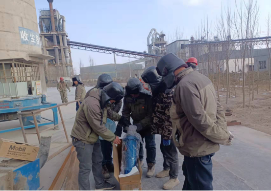 12月22日至28日,資源循環(huán)公司進(jìn)入冬季檢修階段,10℃以下的氣溫,是對(duì)檢修工人的考驗(yàn)。此次重點(diǎn)對(duì)生料輥壓機(jī)柱釘輥軸更換;二次配料生料干粉轉(zhuǎn)子秤、電石渣干粉轉(zhuǎn)子秤技改;烘干破碎機(jī)出口管道內(nèi)的積料清理、內(nèi)襯耐磨板的修復(fù);窯尾電收塵器內(nèi)部清灰,極板極絲、振打裝置以及瓷轉(zhuǎn)軸、瓷缸檢查;預(yù)熱器系統(tǒng) C3 旋風(fēng)筒結(jié)皮、分解爐內(nèi)結(jié)皮、窯尾煙室及縮口處的結(jié)皮清理;三次熱風(fēng)管道內(nèi)的積料清理以及彎頭處的耐火材料修復(fù);回轉(zhuǎn)窯窯尾密封、大齒圈的檢查調(diào)整;窯頭噴煤管的檢查更換;煤立磨減速機(jī)、磨輥、磨盤(pán)瓦的更以及篦冷機(jī)液壓系統(tǒng)、篦板撥料棒的檢查與維護(hù)等10項(xiàng),次項(xiàng)計(jì)劃?rùn)z修內(nèi)容41項(xiàng)。