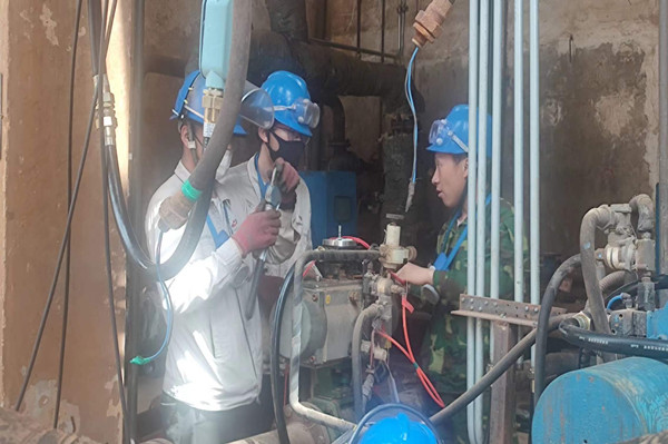 走進(jìn)每一個角落,我都會有一種“未見其人,先聞其聲”的感覺,錘子的敲擊聲,檢修負(fù)責(zé)人的安全交底聲,還有噼里啪啦的雨聲,聲聲入耳,像是一首和諧的樂章。