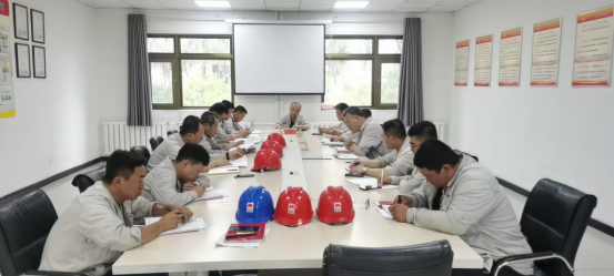 會前副總經(jīng)理梁軍首先組織學(xué)習(xí)了某水泥廠回轉(zhuǎn)窯停車檢修窯筒體冷卻風(fēng)機(jī)做動平衡檢測,由于“安全帶懸掛不當(dāng)”,造成人員受傷的安全經(jīng)驗分享,通報了全國、全區(qū)及行業(yè)內(nèi)部上半年安全形勢。