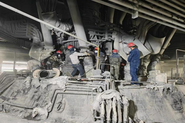 狹小空間里彎腰馱背的姿勢(shì),高空中身系安全帶小心翼翼的挪步;除塵器上蹲坐的和布袋同色身體,電極本體上一雙雙忙忙碌碌不息的雙手都證明了他們對(duì)這份工作的激情。