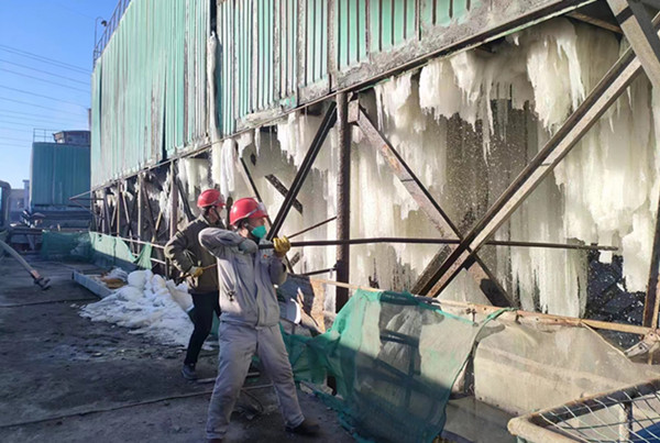 走進(jìn)現(xiàn)場,我們看到的是工友們忙碌的身影,在嚴(yán)寒下,那一張張掛著“兩鬢斑白”和“爬滿灰塵”的臉龐;讓我們看到了他們對待檢修清冰作業(yè)精、專、細(xì)的工作態(tài)度。平時工作中他們沒有太多的言語,只是埋頭苦干,不敢有絲毫懈怠,也不能有半點(diǎn)疏忽。是我們最樸實(shí)無華的一線工友,也是大家常說的,最可愛的人,我們身為金昱元這個大家庭的成員,這是我們的義務(wù)和責(zé)任,工友們早已將“責(zé)任”二字深深地刻在檢修作業(yè)的每一個環(huán)節(jié)。為保證檢修清理作業(yè)質(zhì)量,他們沒有在寒冷面前選擇草草了事,依然一絲不茍的檢查著檢修清理工作的每處細(xì)節(jié),一雙雙沾滿油污被冰水打濕的衣袖,無不彰顯著一種敬業(yè)精神。清理檢修合格的設(shè)備,為了配合裝置的安全平穩(wěn)運(yùn)行,為了現(xiàn)場設(shè)備冷卻塔填料的完好,為了循環(huán)水系統(tǒng)的正常降溫,為了現(xiàn)場工藝指標(biāo)的合格,他們忘卻了勞累,忘卻了休息,用他們勤勞的雙手和吃苦耐勞的拼搏精神在檢修清理現(xiàn)場忙碌著。