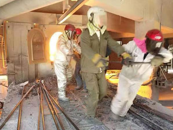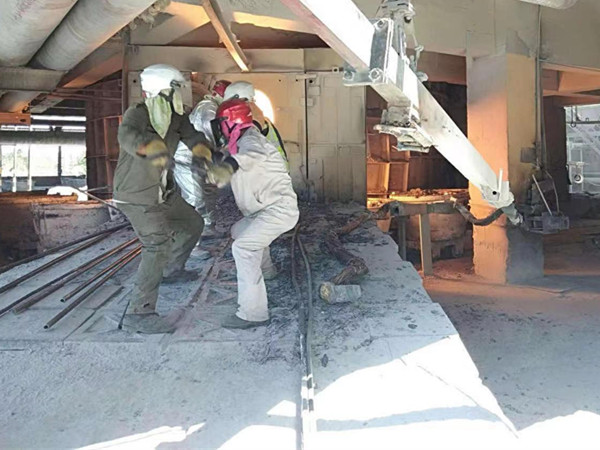 無論是嚴(yán)冬還是酷暑,走進(jìn)資源再生電石出爐現(xiàn)場(chǎng),就能看見這么一群“全副武裝”的職工,身著隔熱服,頭裹防高溫面罩,手戴著“手燜子”,腳著厚勞保;他們同心協(xié)力,干勁十足得揮舞著手中的鋼釬,鋼釬在爐眼里來回穿梭,將近2000攝氏度高溫的電石緩緩流入電石鍋,這一群人就是電石生產(chǎn)中最可親可愛的“出爐工”。
