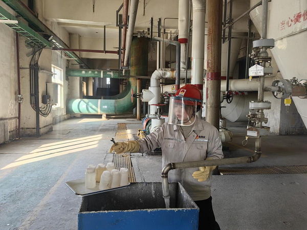她們拎著貼好標(biāo)簽的取樣瓶,快步走向鹽硝廠房的各個取樣點,回來時,取樣瓶里裝著各色各樣的樣品,有的是晶瑩剔透的液體,在瓶中輕輕晃動,泛起細(xì)碎的漣漪;有的是白色的晶體顆粒,隨著腳步的顛簸,發(fā)出“沙沙”的輕響;還有的是粘稠的漿液,掛在瓶壁上,緩緩滑落。將樣品放置在滴定檢測區(qū)的那一刻,瓶身與臺面碰撞,發(fā)出“!钡囊宦暣囗,像是為接下來的化驗工作,敲響了開場的鼓點。