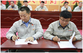 為了進(jìn)一步明確權(quán)責(zé),強(qiáng)化各級管理人員的責(zé)任意識,提高履職能力,會上,集團(tuán)公司各級主管領(lǐng)導(dǎo)簽訂了《2019年經(jīng)營管理目標(biāo)責(zé)任書》和《2019年安全環(huán)保目標(biāo)責(zé)任書》。
