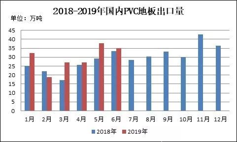 圖9 2018-2019年國(guó)內(nèi)PVC地板出口量