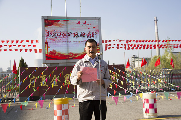 升國旗儀式伊始,集團公司黨委副書記王立軍,集團公司副總裁、青銅峽片區(qū)總經(jīng)理尚興向升國旗儀式致辭。