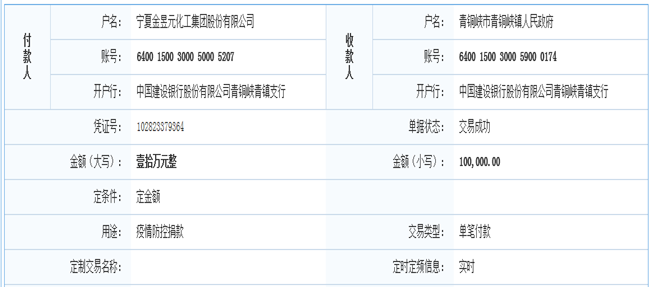 盡管新冠病毒仍在肆虐,但病毒無情,人間有愛。集團(tuán)公司履行社會職責(zé),踐行使命與擔(dān)當(dāng),2月16日,分別向邵崗鎮(zhèn)政府、青銅峽鎮(zhèn)政府捐贈10萬元和價值1萬元物資。