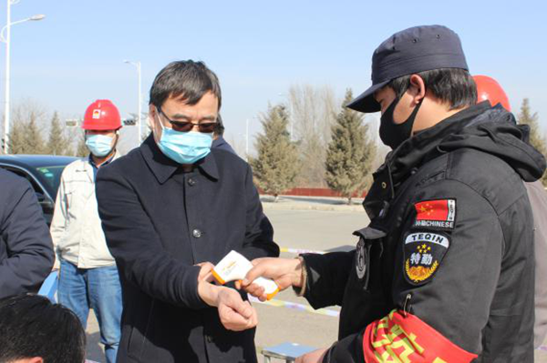 朱洪軍一行在疫情防控檢測點按檢測程序測量體溫、登記信息,詳細查看了疫情防控登記臺賬并到工作現場檢查。經過細致檢查,對固原片區(qū)疫情防控工作給予了充分肯定。