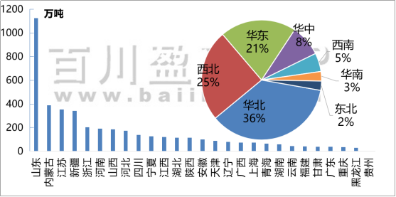 產(chǎn)能:增產(chǎn)集中地為江蘇、內(nèi)蒙古、山東、河北、新疆地區(qū),預(yù)計(jì)到2023年,中國(guó)燒堿產(chǎn)能約4600-4700萬(wàn)噸,山東省燒堿產(chǎn)能將逼近1300萬(wàn)噸,新疆維吾爾自治區(qū)燒堿產(chǎn)能有望突破400萬(wàn)噸,江蘇、內(nèi)蒙古及新疆三地?zé)龎A生產(chǎn)能力旗鼓相當(dāng)。