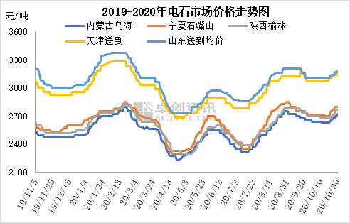 華北地區(qū)PVC企業(yè)電石到貨量前多后少,前期到貨不均衡,部分待卸車數(shù)量較高,部分受運輸制約國慶期間下降明顯。但10月下旬,各地到貨均出現(xiàn)減少,貨源略緊,采購價連續(xù)上漲。目前各地PVC企業(yè)電石到家價格為:山東優(yōu)級品主流接收價3080-3260元/噸,計劃明日上調(diào),天津大沽化到廠價3160元/噸(;嚕缓颖碧粕饺300L/KG接收價3100元/噸;山西榆社送到價格2970元/噸。