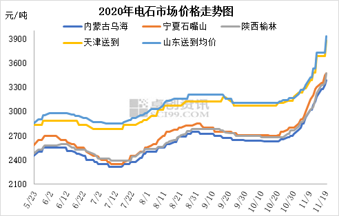 整體市場(chǎng)描述:上周五至今電石價(jià)格繼續(xù)快速上漲,各地采購(gòu)價(jià)連續(xù)上調(diào)300-400元/噸,電石出廠(chǎng)價(jià)上調(diào)200元/噸左右,且烏海及周邊貿(mào)易出廠(chǎng)價(jià)推出了明日繼續(xù)上漲100元/噸計(jì)劃。至此,10月下旬至今,電石價(jià)格已連續(xù)上調(diào)了700-800元/噸,達(dá)到2011年9月以來(lái)的最高水平。本周電石價(jià)格仍在繼續(xù)上調(diào),主要仍因供需失衡,貨源緊俏推動(dòng)。內(nèi)蒙古地區(qū)電石仍頻繁有不同程度的限電現(xiàn)象,產(chǎn)量不足,寧夏石嘴山地區(qū)受重污染天氣影響,本周后期有電石爐降負(fù)荷現(xiàn)象,外加其它復(fù)工電石爐恢復(fù)緩慢,電石增量較為有限;但PVC價(jià)格仍在連續(xù)上漲,前期停車(chē)PVC企業(yè)也有復(fù)產(chǎn),整體開(kāi)工高位,部分甚至超負(fù)荷運(yùn)行,外加冬季來(lái)臨前對(duì)電石也有補(bǔ)庫(kù)需求,整體需求維持高位,綜合導(dǎo)致電石貨源持續(xù)緊張,價(jià)格得以連續(xù)上揚(yáng)。