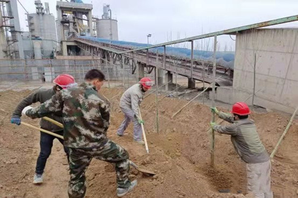 參加植樹的職工一到現(xiàn)場,便投入到火熱的工作中。大家或揮鍬挖坑,或扶苗培土,或提桶澆水,所有人齊心協(xié)力、相互配合,現(xiàn)場一片繁忙景象。