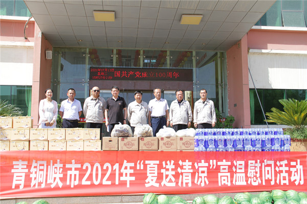 酷夏送清涼,絲絲潤(rùn)心田。7月13日下午,青銅峽市委常委楊天壽一行蒞臨寧夏金昱元化工集團(tuán)股份有限公司,為堅(jiān)守在酷夏工作的一線員工送來(lái)防暑降溫物品,使廣大員工內(nèi)心倍感絲絲清涼。