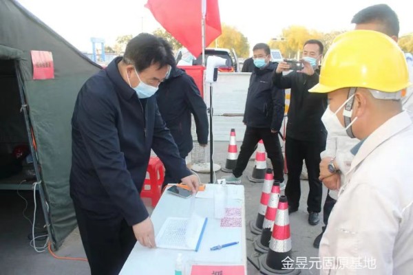 2022年10月18日下午,固原市常務(wù)副市長任立新一行蒞臨金昱元化工集團(tuán)固原片區(qū)調(diào)研疫情防控工作,集團(tuán)公司副總裁、片區(qū)總經(jīng)理王立軍,副總經(jīng)理馬建東、湯洪冰,綜合管理部部長劉志江陪同。