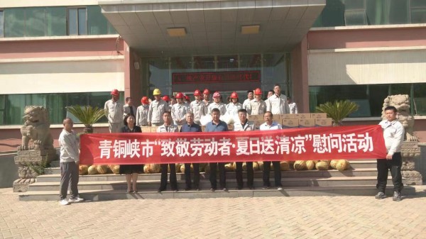 青銅峽市總工會和固原經濟開發(fā)區(qū)總工會為集團公司送來西瓜、礦泉水、金絲菊、冰糖等防暑物品,表達對企業(yè)一線員工關心和厚愛。